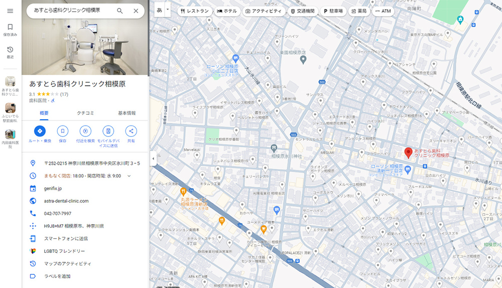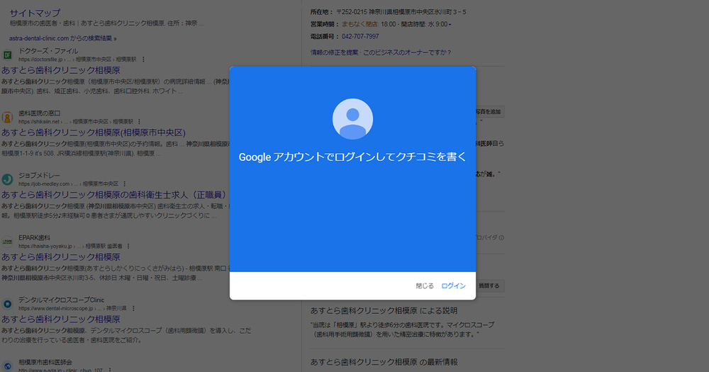検索結果の右側に、ビジネスプロフィールが表示されます。