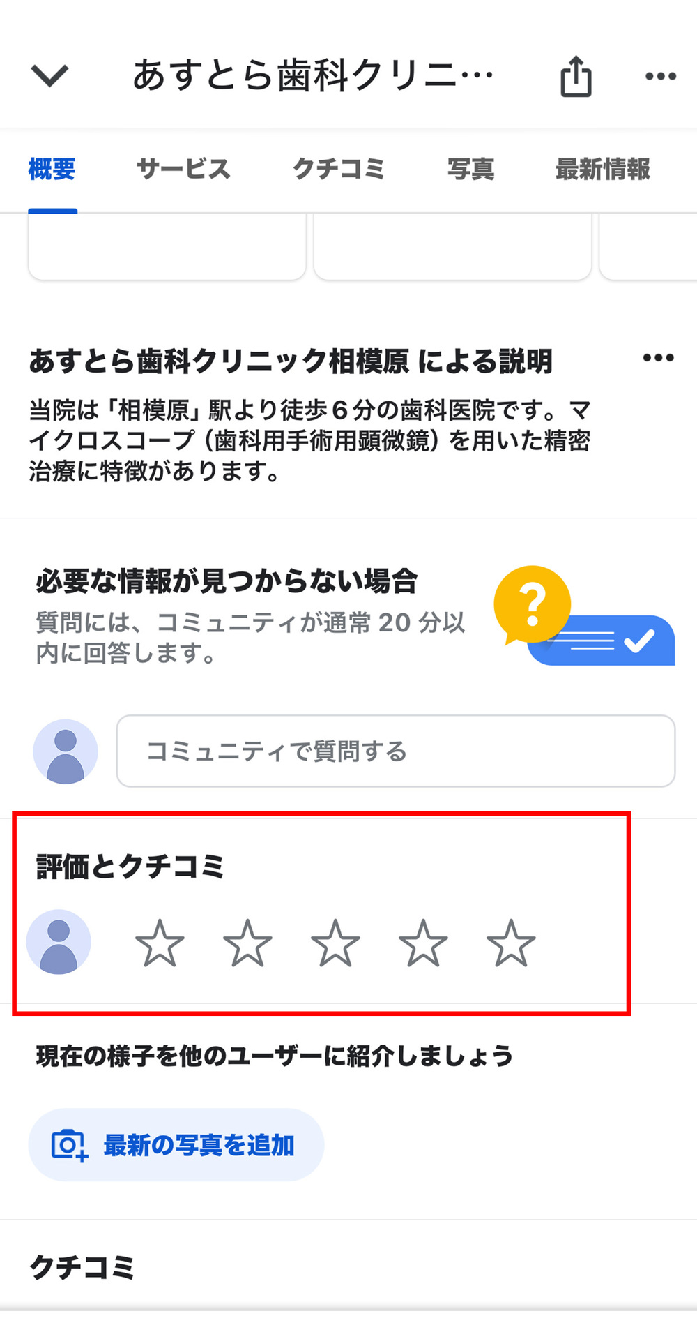 星評価をする:「評価とクチコミ」セクションの「星」アイコンをタップする。